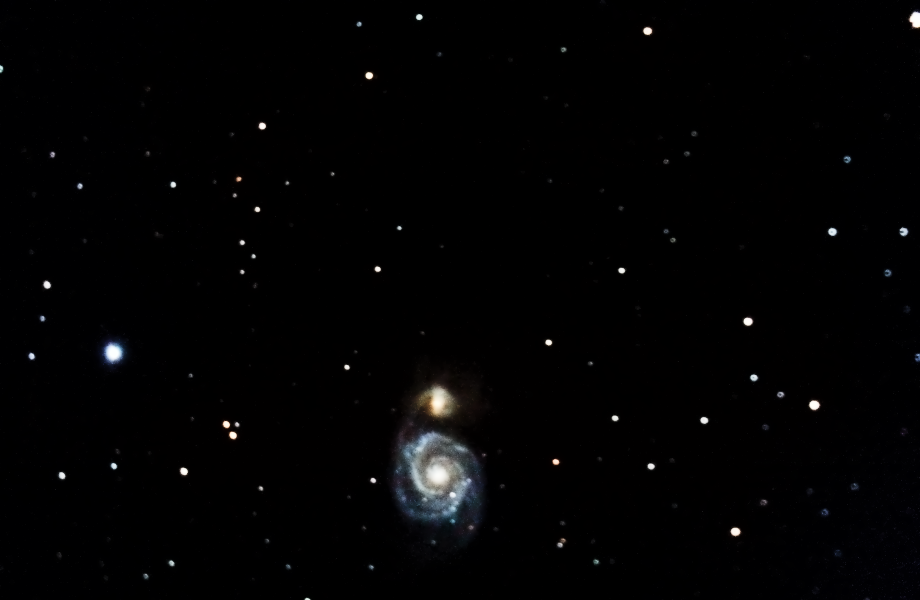 Almost a year passes before I visit M51 again. By now, I've learned more. I take more exposures. The exposures are longer. As a result, I need to use PHD software to guide the mount, making sure it tracks the target object exactly as it tracks the sky. My image processing skills have improved somewhat now too.